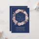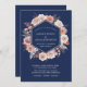 Boho Navy Blue Pink Floral Wreath Wedding Invitation