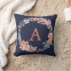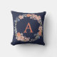 Boho Navy et Peach Monogram Floral Wreath Coussin