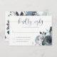 This trendy and elegant wedding RSVP card features navy blue watercolor peony flowers with lush leaves, berries, and feathers, and elegant modern calligraphy.