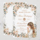 Boho Neutral Floral Arch First Holy Communion Invitation, Girl Kneeling Primera Comunión Invitación, Spanish Holy Communion