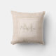 This bohemian pillow features a custom monogram, custom script name, and blush abstract leaves on a neutral background. Ideal for a neutral boho chic home.