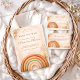 A warm and modern boho baby shower design featuring a soft neutral rainbow in earthy terracotta, sage, peach, and sand tones. Delicate dried florals and subtle textured details create an organic, minimalist look that feels both cozy and refined. Perfect for celebrating a mama-to-be who loves natural palettes, modern bohemian styling, and timeless simplicity.