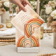 A warm and modern boho baby shower design featuring a soft neutral rainbow in earthy terracotta, sage, peach, and sand tones. Delicate dried florals and subtle textured details create an organic, minimalist look that feels both cozy and refined. Perfect for celebrating a mama-to-be who loves natural palettes, modern bohemian styling, and timeless simplicity.