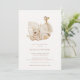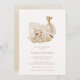 This bohemian-inspired rustic nursery baby shower design features watercolor baby nursery decor, a sweet stuffie and giraffe in beautiful neutral tones. The rear side of this invitation features a beige watercolor patterned background. An elegant, chic and adorable baby shower design.