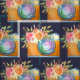 Boho Orange Camera & Flowers Watercolor Pattern Fabric