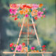 L'amour est en fleurs ! Boho orangé fleurie nuptiale bienvenue signe transparent avec joli peint à la main de fleurs orange, rose et jaune aquarelle illustration avec une police de script élégant moderne disant avec feuillage bohème verdure. Parfait pour le printemps, l'été en plein air jardin nuptiale ou mariage.