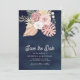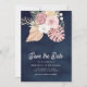 Boho Palm Dusty Pink Roses Navy Blue Wedding Save The Date