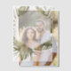 Watercolored palm leaves form an octagonal frame. Featuring subtle sage green foliage the frame holds announcement of wedding with custom personalized names. Ideal for over a photo invitation. Invitation shown is available at: