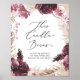 This boho pampas candle burns wedding memorial sign is perfect for a summer wedding. The floral watercolor design features bohemian burgundy and blush pink flowers with sprigs of neutral pampas grass and golden dried palm leaves.