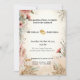 Laissez-vous surprendre par cette faire-part de mariage boho enchanteresse, qui présente de délicates flores d'aquarelles dans des tons doux rose vif et pêche, entrelacées d'herbe pampa aérée, de feuilles d'eucalyptus et de subtiles touches de verdure sur un arrière - plan beige crémeux. Le design romantique peint à la main crée un cadre rêveur autour d'un espace central personnalisable pour les détails de votre cérémonie, ce qui en fait l'endroit idéal pour les mariages bohèmes, rustiques ou de jardin. Facile à personnaliser.