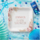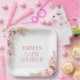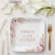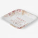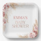 Sweet boho floral girl's baby shower paper plate featuring a faux rose gold foil heading and various dry floral arrangements in blush and natural tones and with pampas grass.