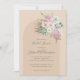 This beautiful bridal shower invitation features an arch shape in beige with boho pampas grass and flowers in pink, green, and white.