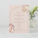 Pampas rose moelleux Boho, aquarelles herbacées florale et élégante arche encadrent vos informations spéciales de célébration mariage dans la typographie moderne avec des initiales monogrammes au verso de cette élégante invitation de mariage. Conçu par Thisisnotme©
