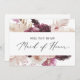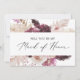 This boho pampas grass maid of honour proposal card is perfect for a summer wedding. The floral watercolor design features bohemian burgundy and blush pink flowers with sprigs of neutral pampas grass and golden dried palm leaves. Customize the card with the name of the bride and the maid of honour. Personalize the back of the card with a personalized message.