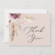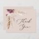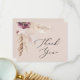 This boho pampas grass peach thank you card is perfect for a summer wedding. The floral watercolor design features bohemian burgundy and blush pink flowers with sprigs of neutral pampas grass and golden dried palm leaves. Personalize the back of the card with your names, and a thank you message. Alternatively, leave the thank you message template section blank to hand write a personalized note on each card after they arrive. These cards can be used for a wedding, bridal shower, or any special event.