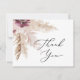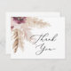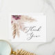 This boho pampas grass thank you card is perfect for a summer wedding. The floral watercolor design features bohemian burgundy and blush pink flowers with sprigs of neutral pampas grass and golden dried palm leaves. Personalize the back of the card with your names, and a thank you message. Alternatively, leave the thank you message template section blank to hand write a personalized note on each card after they arrive. These cards can be used for a wedding, bridal shower, or any special event.