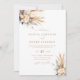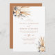 Elegant burnt orange font watercolor boho bouquet with pampas grass and dried florals wedding invitation.