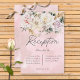 This design features blush pink and white roses and tan pampas grass half frame on a soft blush pink watercolor and subtle glitter background. This card is part of the Boho Pampas & Pink Roses Wedding Suite Collection created by Simply Farmhouse Press.