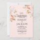 Boho pastel pink brown rustic floral wedding invitation