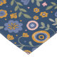 This image is a seamless pattern featuring a vibrant boho floral design. The pattern is composed of various stylized flowers in shades of blue, yellow, and orange, interspersed with leaves and small dots. The background is a simple white, allowing the colourful flowers to stand out. The overall aesthetic is cheerful and playful. The intricate details of the floral elements create a sense of depth and texture, adding visual interest. The use of contrasting colours adds vibrancy and makes the pattern visually appealing.
