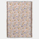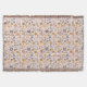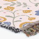 This image is a seamless pattern featuring a vibrant boho floral design. The pattern is composed of various stylized flowers in shades of blue, yellow, and orange, interspersed with leaves and small dots. The background is a simple white, allowing the colourful flowers to stand out. The overall aesthetic is cheerful and playful. The intricate details of the floral elements create a sense of depth and texture, adding visual interest. The use of contrasting colours adds vibrancy and makes the pattern visually appealing.