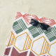This beach towel has a Boho design of different shapes with lines in them in various colors.