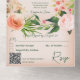 Boho Peach Floral Wreath & Feathers QR Code All In One Invitation