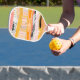 Unleash your inner paddle ball champion and dominate the court with this stunning pickleball paddle. Boho Peach Gold Personalized Pickleball Paddle.
