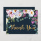 Boho inspired watercolor floral and thank you wording with longhorn skull at back modern thank you card.