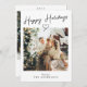 If you are looking for a simple minimalist beautiful and easy editable family Christmas card. This one is perfect for you. And as you see the design features a one photo on the front with a whimsical happy holidays and boho hand drawn heart shape. And a second photo on the back that can be changed by your photo. And your family name and year under it. With white background and customizable Christmas greeting on the back of the card.