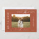 Elegant minimal design simple bohemian verona sunset burnt orange and white script custom photo wedding save the date card.