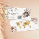Destination Mexico Beach Wedding Boarding Pass Ticket Gold Plane Save the Date with heart and plane icon with boho watercolor florals. Add your photo and qr code