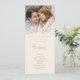 Téléchargement numérique imprimable ou imprimé Boho Photo Script Cream Terracotta Wedding Program. Vibes Boho en terre cuite douce et crème avec votre photo au bord supérieur derrière une couche de teinte graduée avec le texte partiellement recouvert sur le dessus. Il vous suffit de remplacer l'exemple d'image par le vôtre et de personnaliser facilement les mots à vos propres détails.