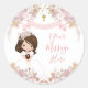 Boho Pink Floral Girl 1st Communion Your Message Classic Round Sticker