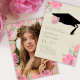 Boho pink floral girl's graduation party invitations are the perfect addition to any high school or college graduation. These invitations feature a pink and muted floral design that can be personalized with any name and photo and will go perfectly with your other floral, boho, or pink graduation party decorations.