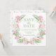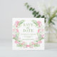 Indulge in classic elegance with our botanical-themed save-the-date photo invitation. This sophisticated invitation captures the essence of rustic charm, adorned with a captivating wreath of pink flower blooms. Set the perfect tone for your celebration with this refined and stylish design.