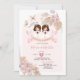 Boho Pink Floral Twin Girl First Holy Communion Invitation