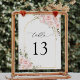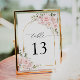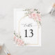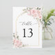 Bohemian pink rose bouquet style with faux gold arch table number template with elegant and blush florals and greenery botanicals in hand-printed watercolor.