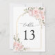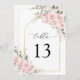 Boho Blush Pink Rose Floral Sage Green Botanical Gold Arch Elegant Wedding Table Number.