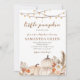 Embrace the warmth of the season with our Boho Pumpkin Baby Shower Invitation. This rustic-inspired invite features whimsical hanging light bulbs that twinkle across the top, casting a soft glow over an enchanting autumnal arrangement of pumpkins, pampas grass, and blush-toned roses nestled at the bottom. Perfect for a fall baby shower, this invitation blends bohemian charm with rustic elegance. Whether you're hosting indoors or out, this invitation will delight guests and set the perfect mood for your special day. BBS283
