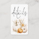 Boho Pumpkins Script QR Code Wedding Details enclosure making it convenient for your guests to visit your wedding website by scanning your QR code. A MINI size to enclose with your invitations. Details is in a stylish set script and easily personalise the rest of the words to your own and replace the sample QR code on the back with yours.