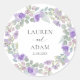 Boho Purple Floral Couples Names Wedding Classic Round Sticker