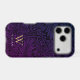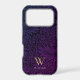 Boho Purple Floral Gold Monogram Phone Case. Monogram is an elegant gold serif font and your name is a white sans serif font.
