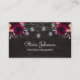 Elevate your boho wedding organizer business with our Boho Purple Flower String Light Black Wooden Business Card! Personalize it with your name, phone, and address, It adds a touch of natural elegance to your style. Great as gift for nature and flower lovers.