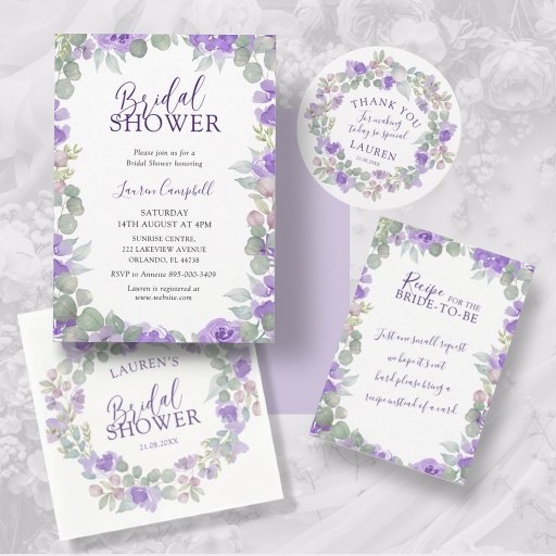 Bring a soft, romantic touch to your celebration with this elegant bridal shower napkin featuring original watercolor floral artwork. A delicate wreath of lavender blooms, muted greenery, and subtle blush accents surrounds modern script and classic typography, creating a timeless garden-inspired design. Perfect for bridal showers, weddings, and spring or summer events, these napkins add a refined and cohesive look to your table décor.