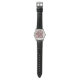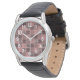 This men's watch has a Boho design of squares with patterns in each in black and pink.