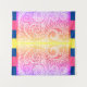 Doodle Design - Cette tapisserie présente un design coloré et tourbillonnant, avec des tons rose, orange et jaune. La motif est détaillée et symétrique, ce qui lui donne un aspect décoratif. Les bords ont des blocs de couleurs audacieux en bleu, rose et jaune, ajoutant une touche amusante et moderne.
