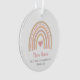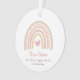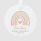 Premier ornement de Noël du bébé mignon avec un coeur rose à l'intérieur d'un arc-en-ciel boho avec le nom du bébé et les statistiques de naissance. La face arrière a votre photo préférée de nouveau-né. Ce ornement moderne fait un grand cadeau de Noël pour les nouveaux parents d'une petite fille.