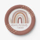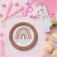 Boho Watercolor Rainbow with Pampas Grass Minimalist Birthday - Paper plates. Personalize with your own details to make it your own.