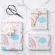 Boho rainbow pattern with clouds pastel wrapping paper sheet